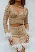 The Sage top is a hand-knitted crochet wrap top, featuring ostrich feather details on the sleeves for the ultimate bold glamour. Style from beach to bar in this versatile show stopper