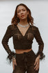 The Sage top is a hand-knitted crochet wrap top, featuring ostrich feather details on the sleeves for the ultimate bold glamour. Style from beach to bar in this versatile show stopper